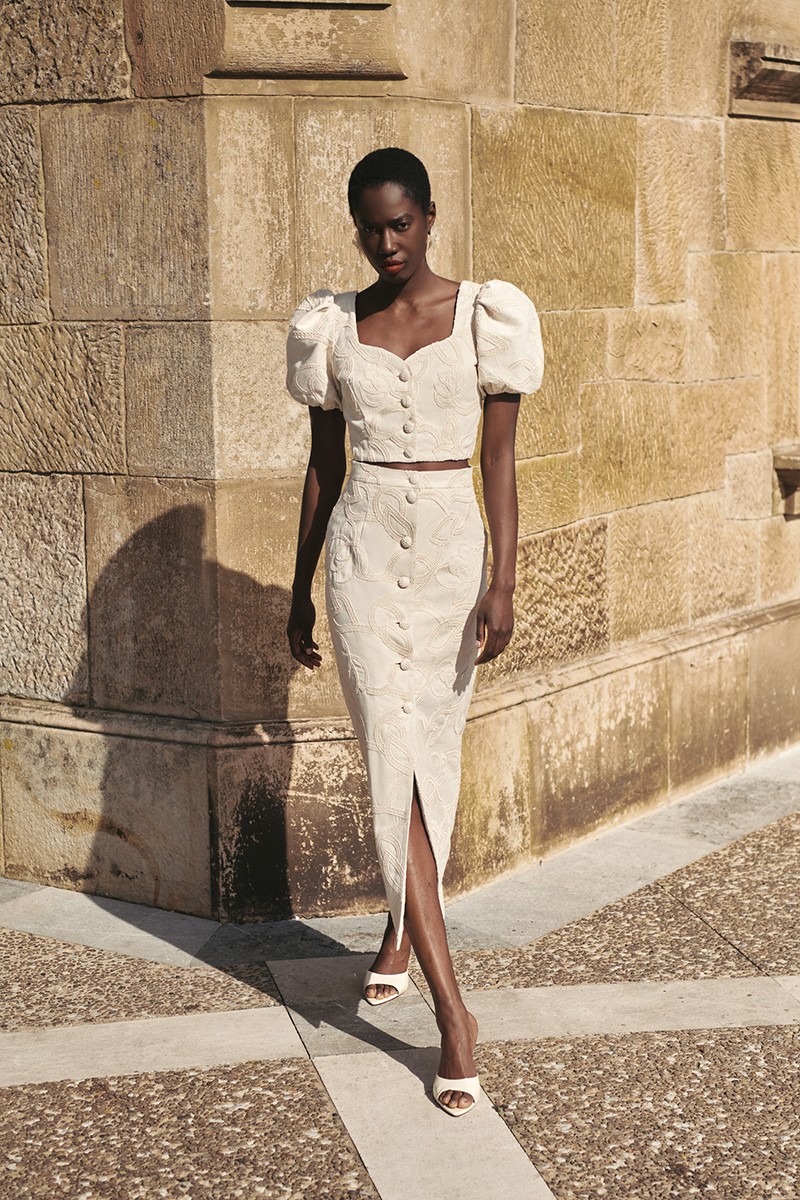 Precioso top confeccionado en un precioso tejido de lino en tono beige con un original bordado en relieve al tono. (...)