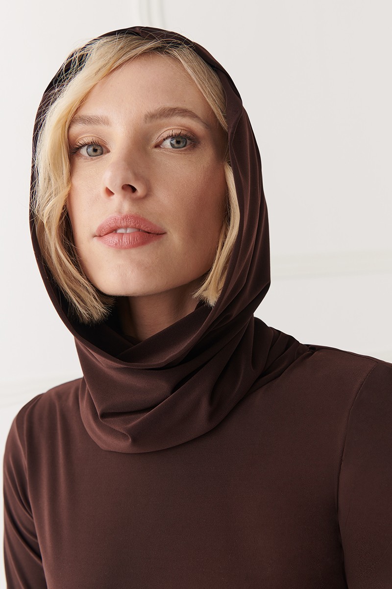 Precioso vestido midi confeccionado en un tejido de punto de seda color marrón.Tejido de gran calidad (...)