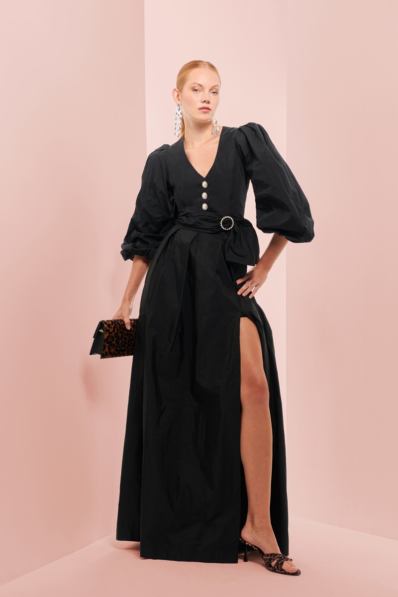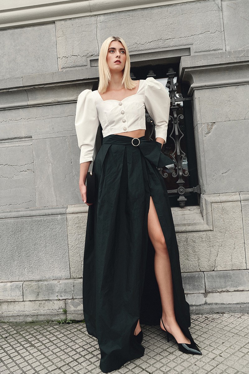 Preciosa falda larga confeccionada en un tejido de tafetán negro de excelente calidad. (...)