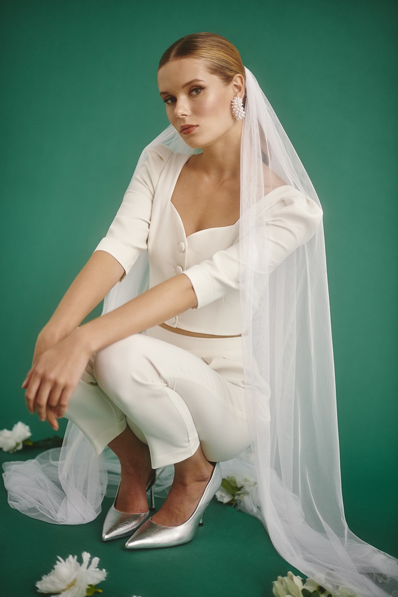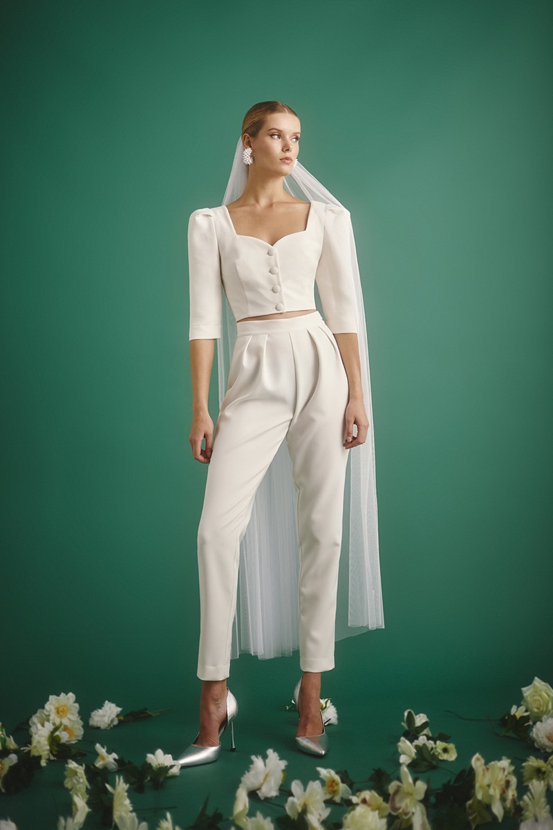 Precioso conjunto de dos piezas de palazzo y top confeccionado en un crep de alta calidad blanco. (...)