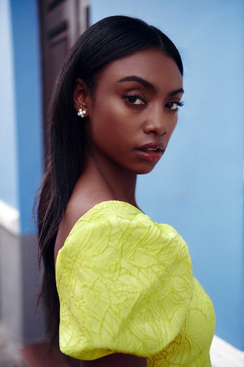 Top corto de escote corazón con manga globo pequeña y cierre con botones joya en tonos plata. Confeccionado en un precioso tejido jacquard brocado en color lima. (...)