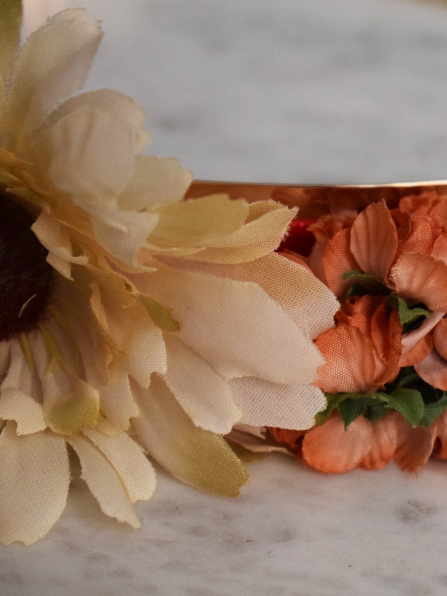 Precioso Cinturón de base dorada forrado con una tira central de terciopelo naranja. (...)