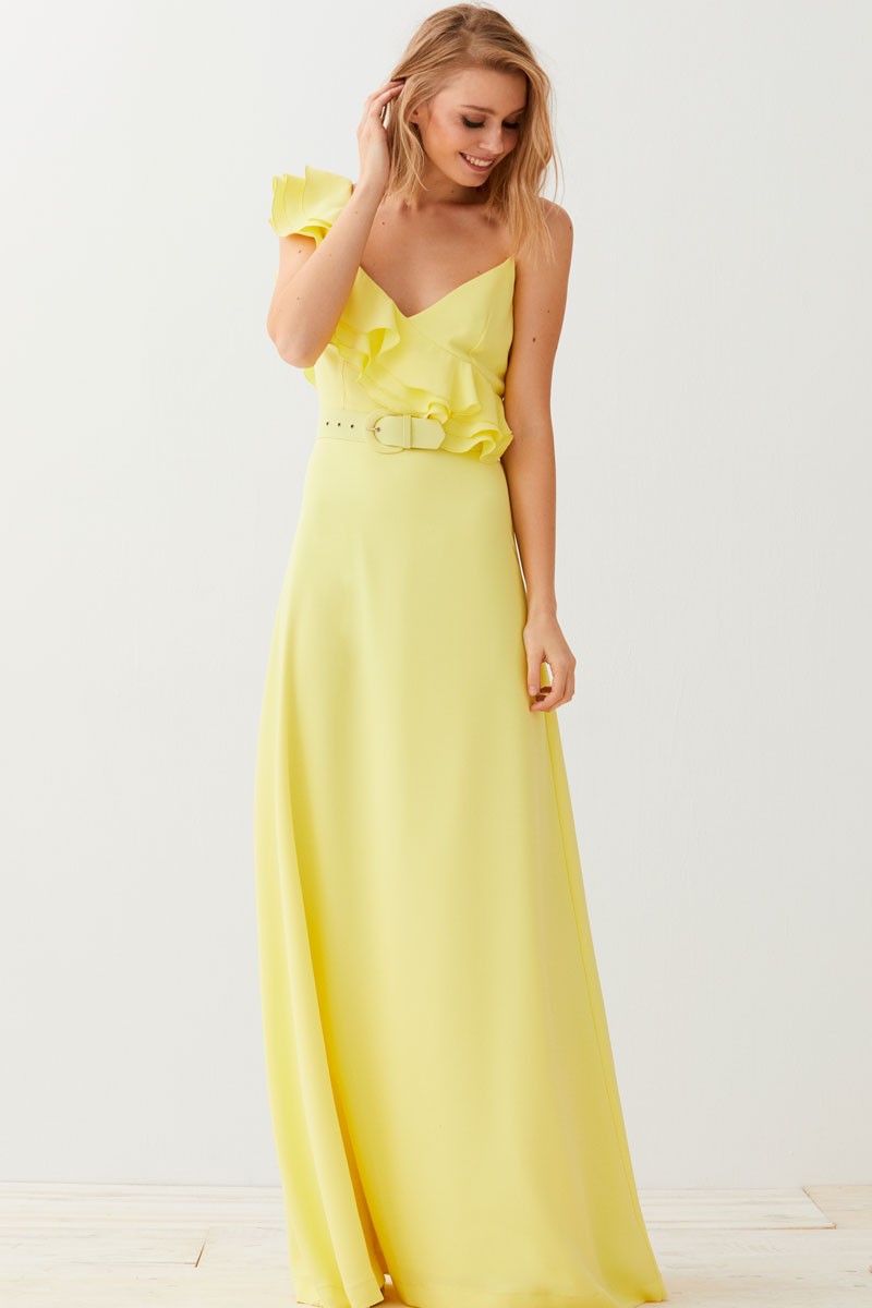 Beautiful belt lined in crepe in yellow color with buckle in the center and holes to adjust it to the waist. (...)