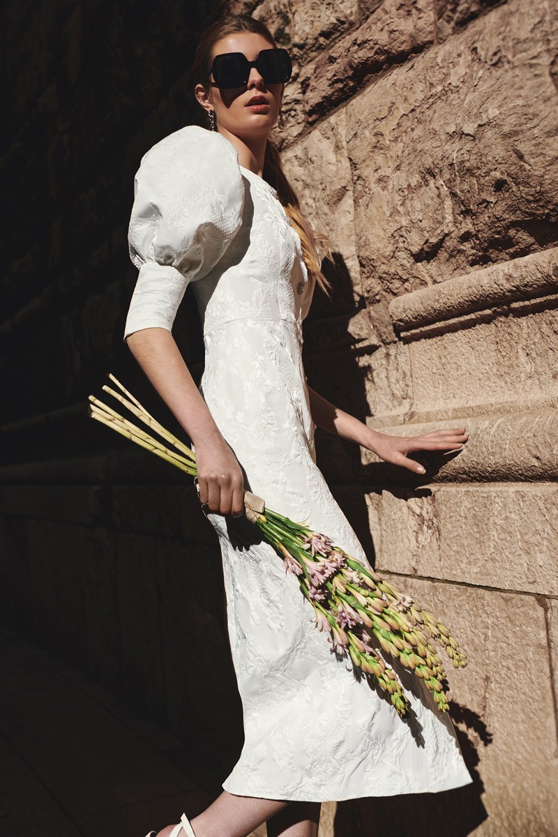 Precioso vestido confeccionado en jacquard con dibujos de flores en relieve color blanco de calidad premium. (...)