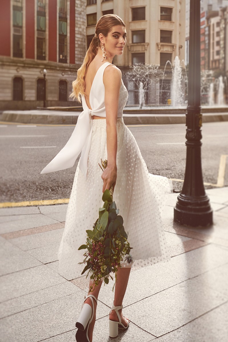 Preciosa falda de tul confeccionada en tul bordado con pequeñas margaritas color blanco roto de largo midi por debajo de la rodilla. (...)