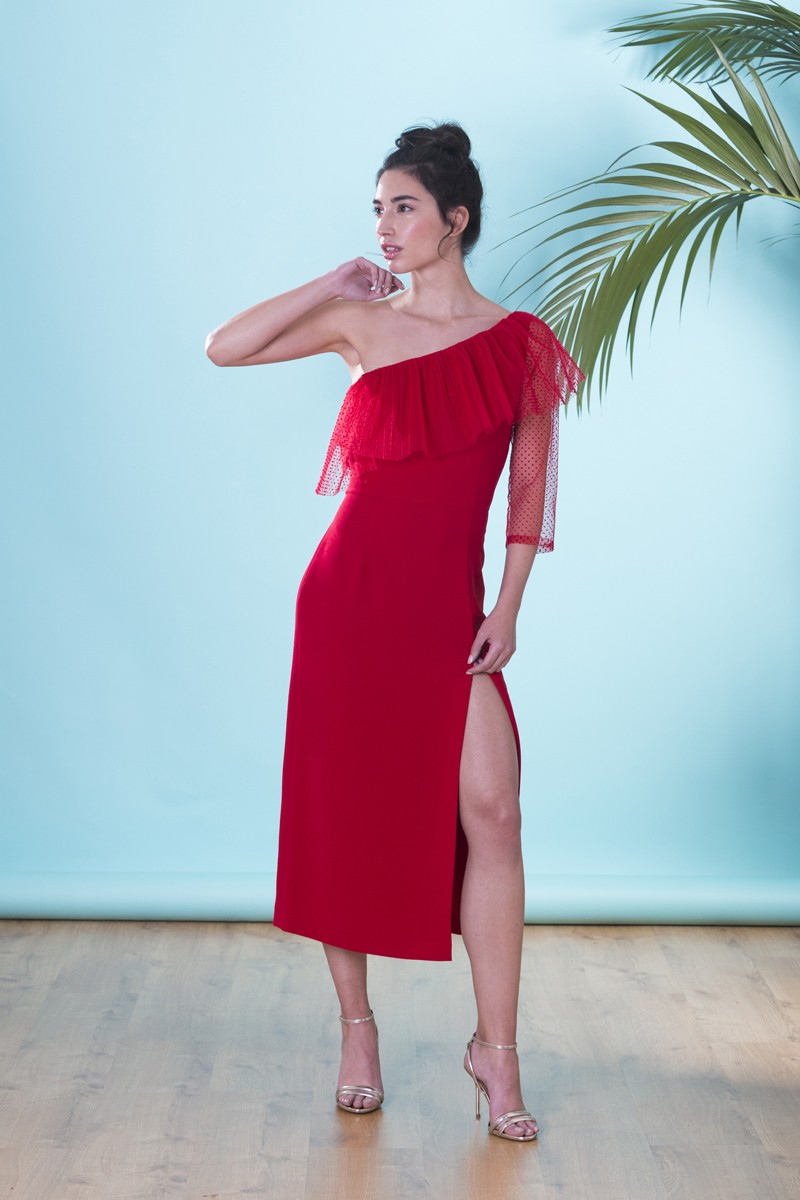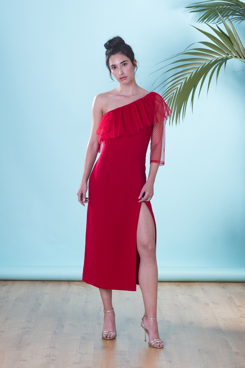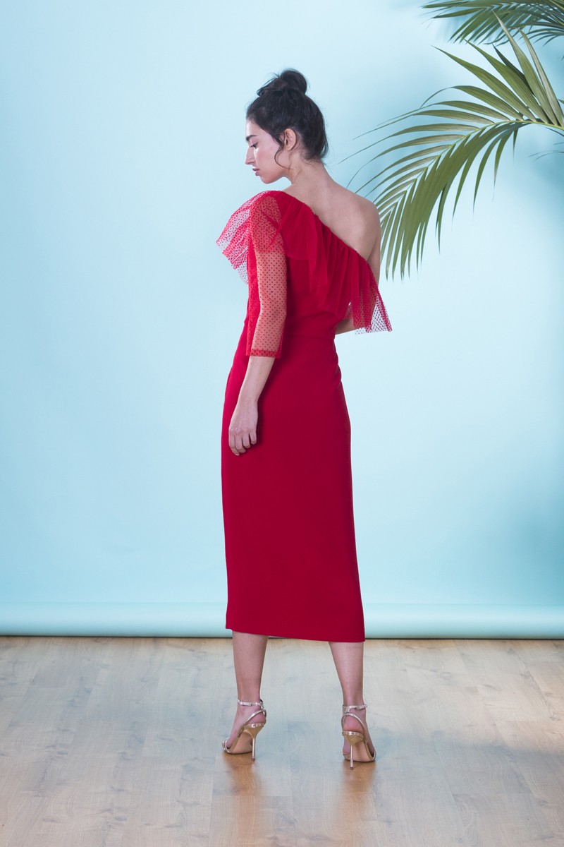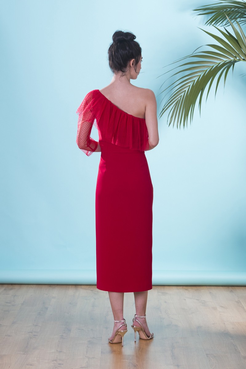 Vestido Corto asimétrico confeccionado en crepe de alta calidad de color Rojo. (...)
