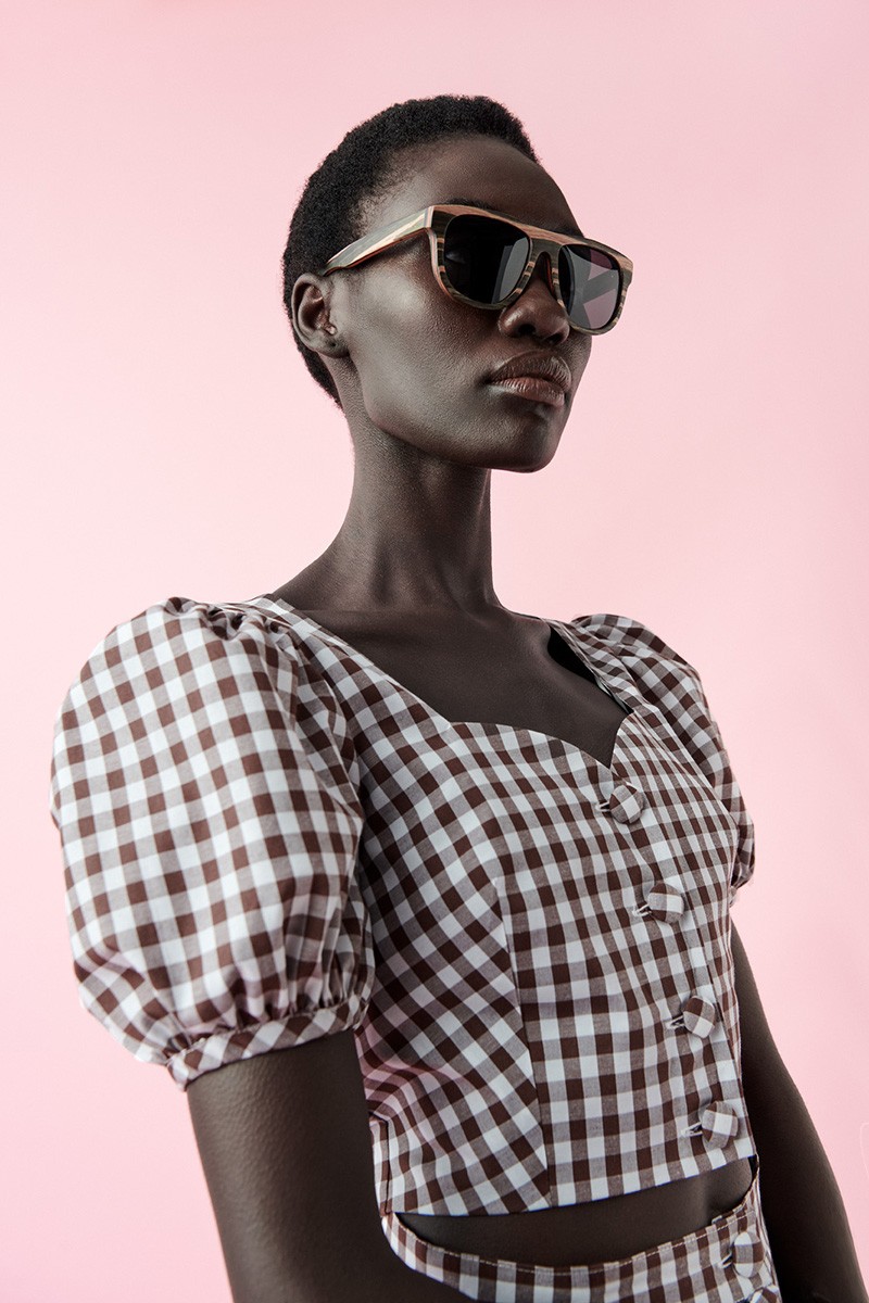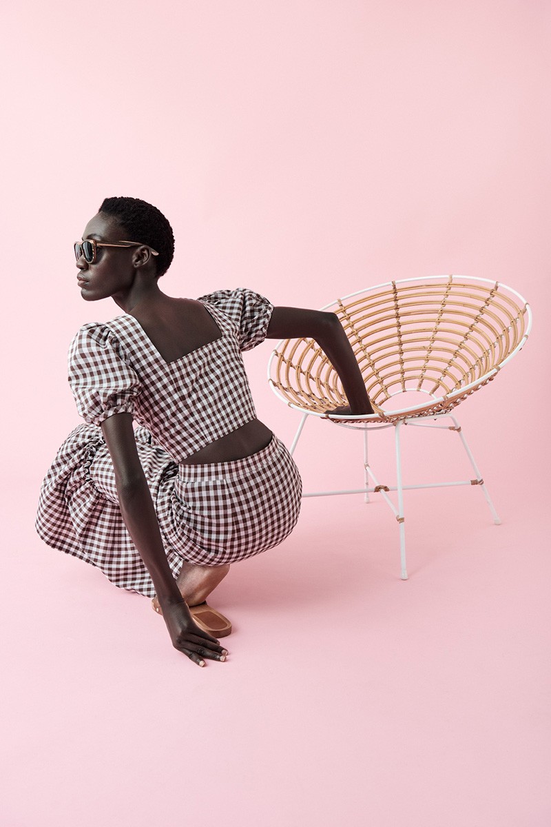 Precioso conjunto de dos piezas de top y falda confeccionado en cuadros vichy de alta calidad de color marrón. (...)