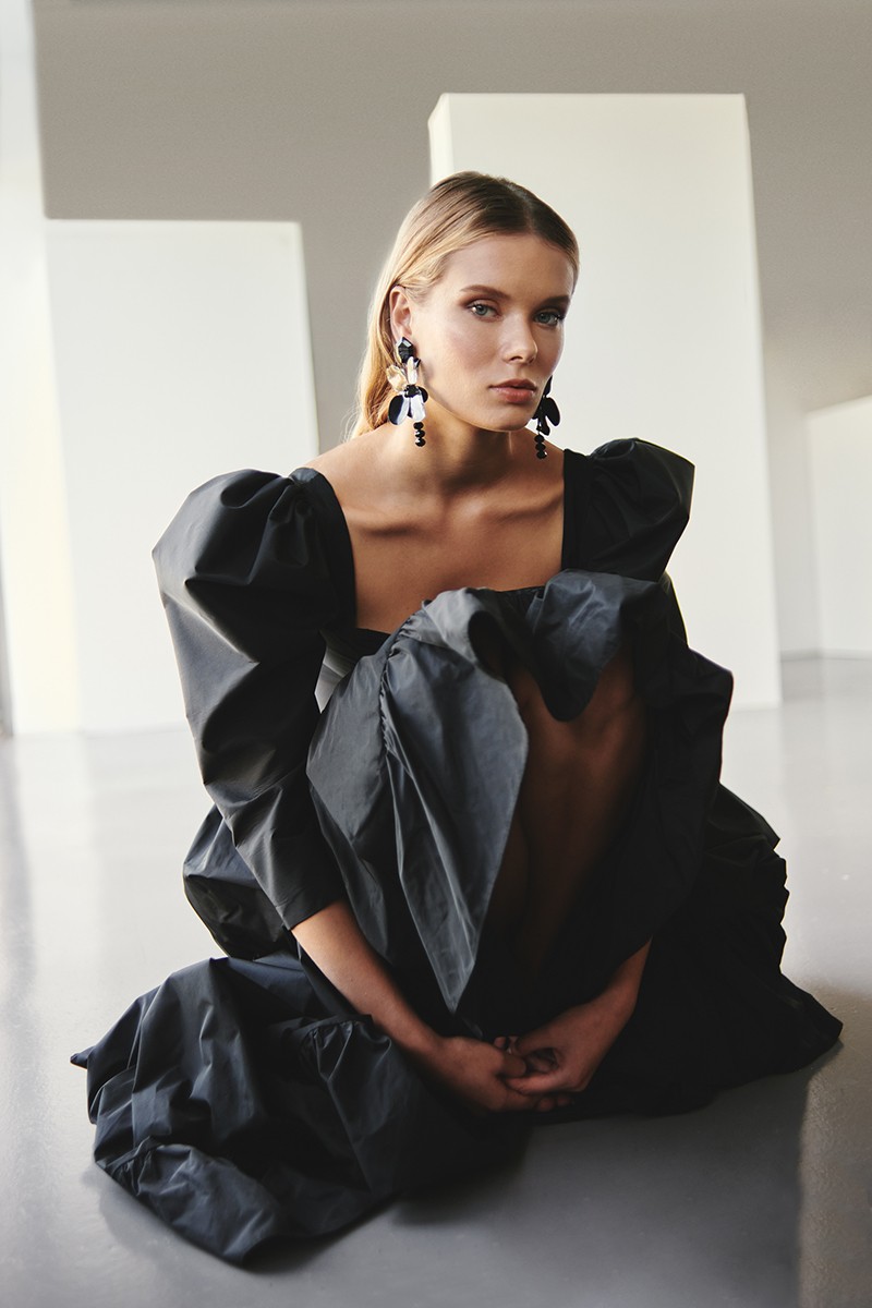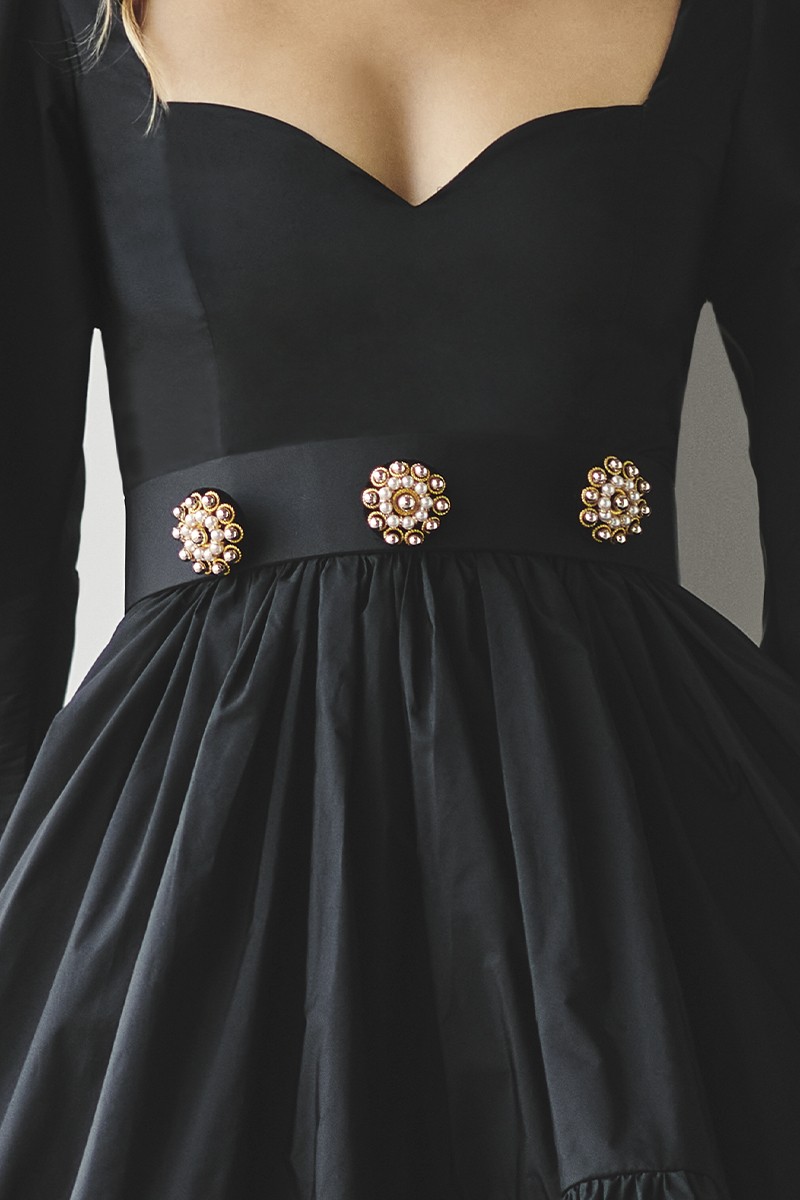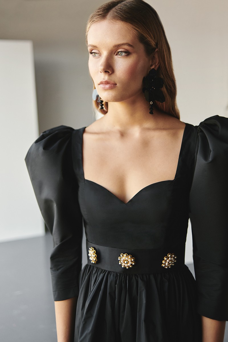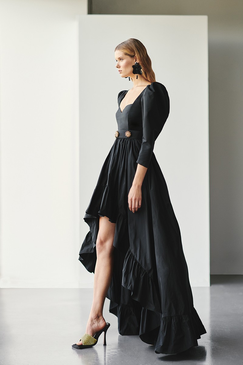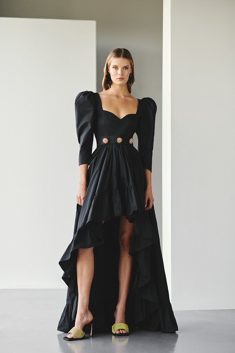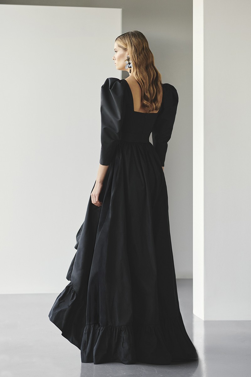Impresionante vestido largo confeccionado en tafetán de alta calidad en color negro. (...)