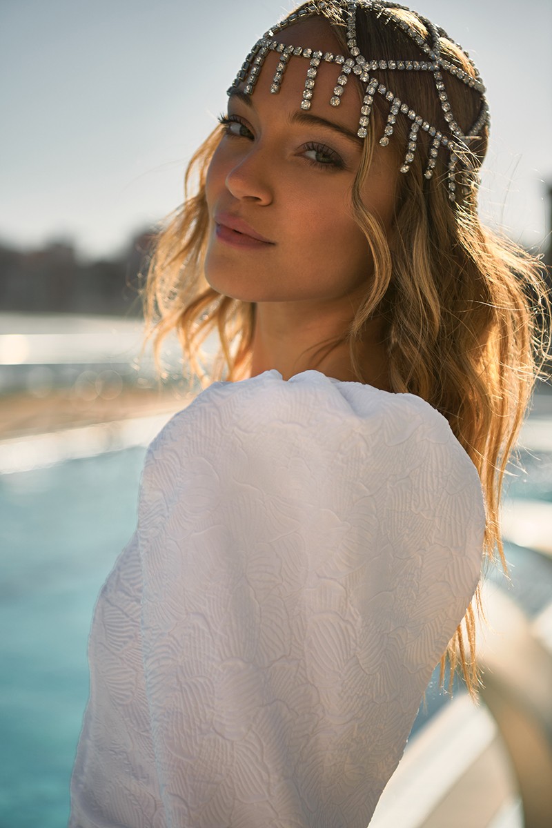 Precioso vestido confeccionado en un jacquard blanco con estampado floral de excelente calidad, destaca por su manga francesa y 3 pliegues en el hombro que le dan un ligero volumen. (...)