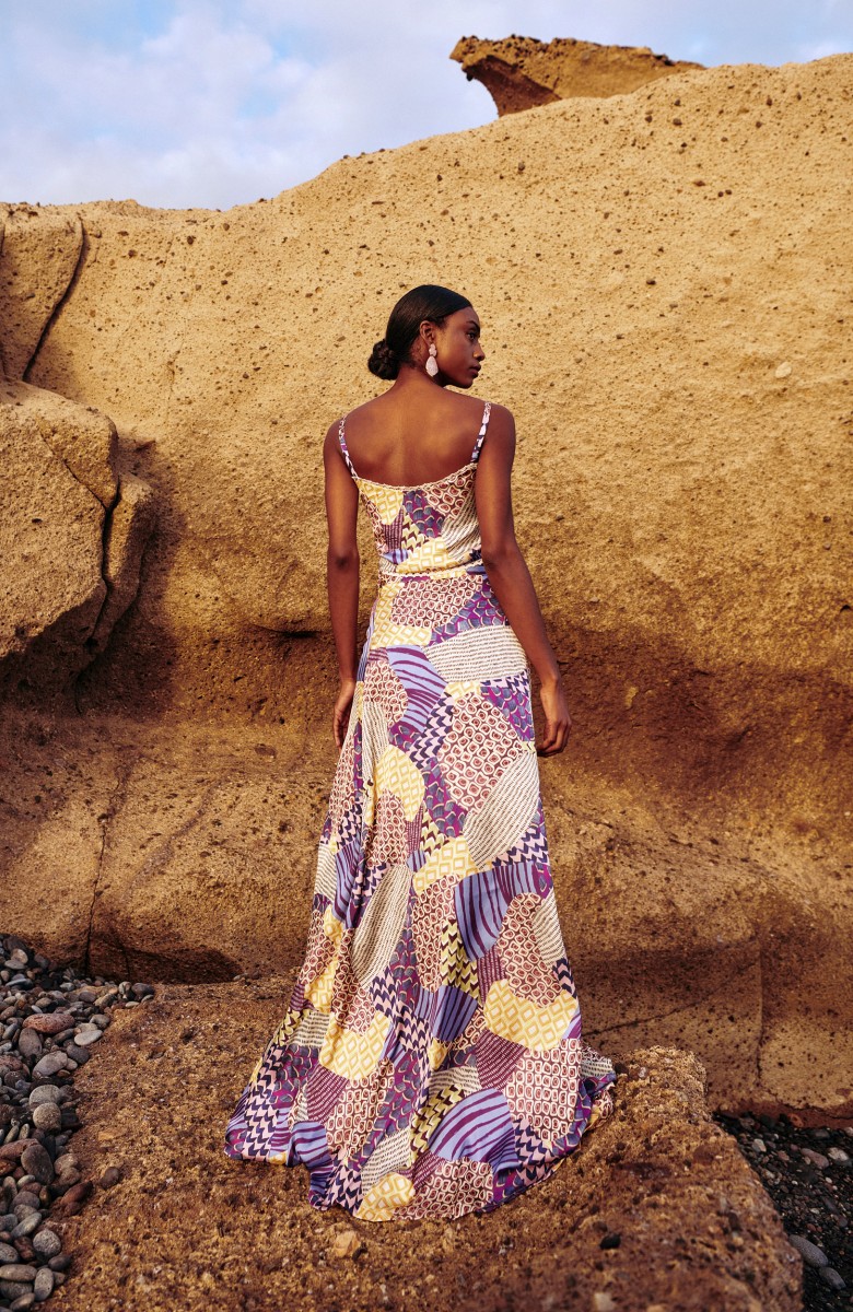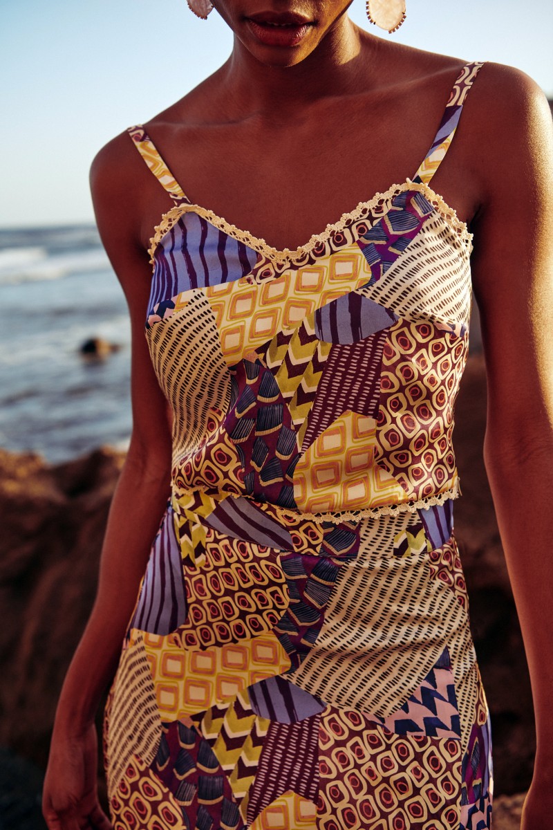 Maravilloso top confeccionado en tejido de satén estampado geométrico de gran caldiad en tonos lilas, morados, amarillos y verdes (...)