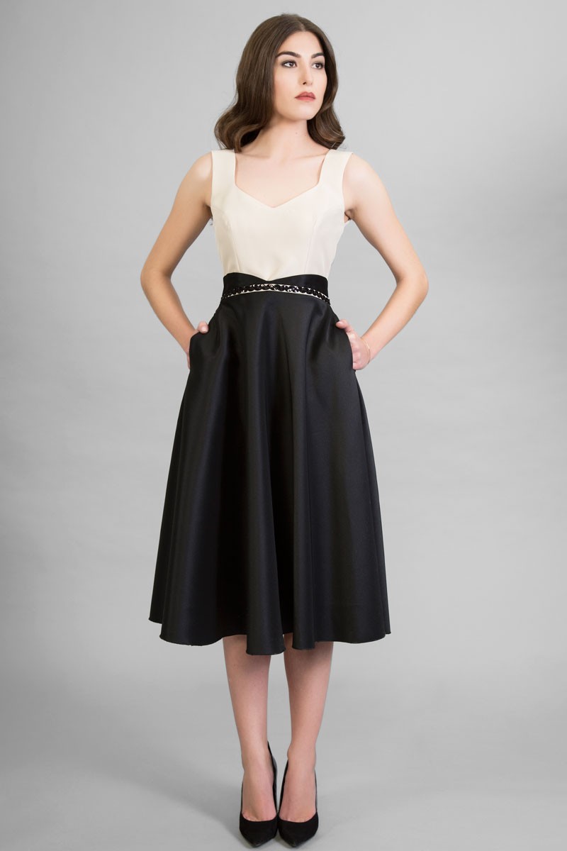 Precioso Vestido Midi bicolor con escote corazón. Un elegante y versátil que resalta la feminidad de la figura y remarca la cintura con un bello bordado de lentejuelas. La (...)