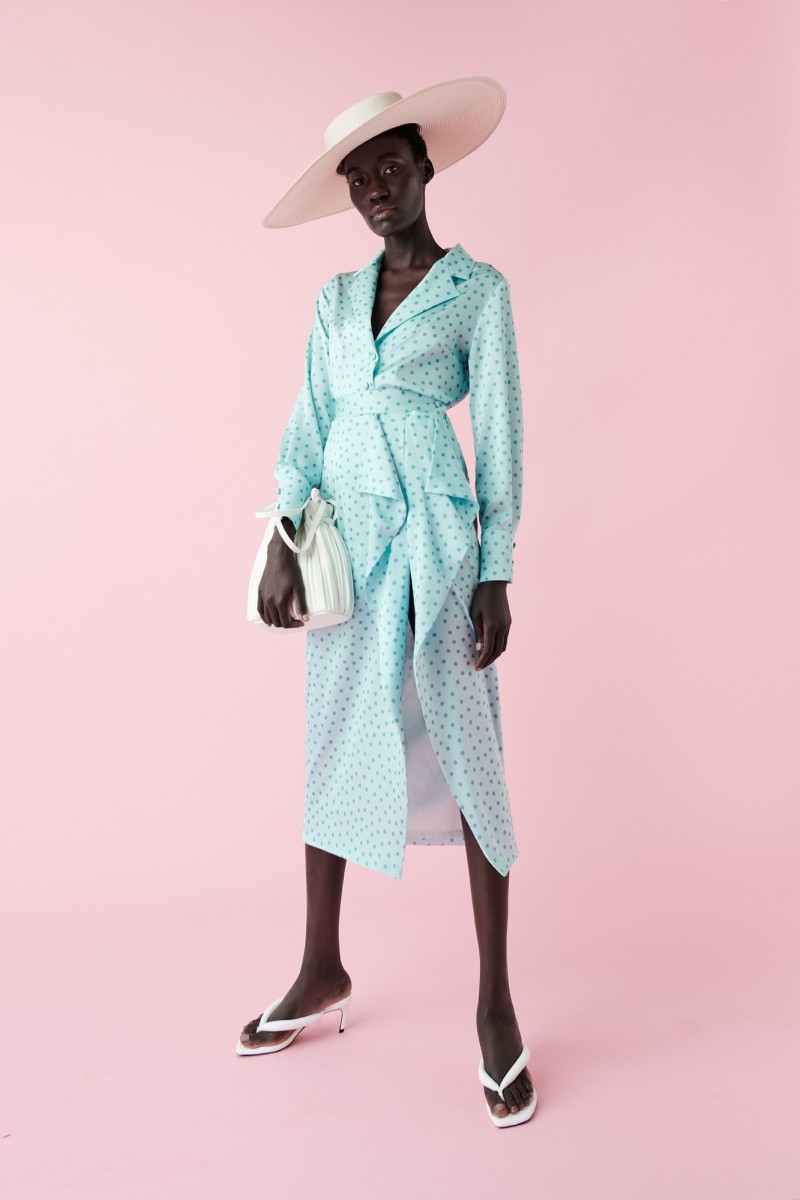 Preciosa camisa de lunares confeccionado en crepe de alta calidad en tonos aguamarina. (...)