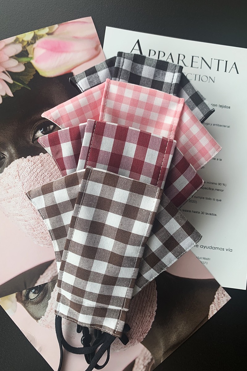 Mascarilla homologada de cuadros vichy con diseño de 3 dimensiones con pieza horizontal y zona de los ojos más despejada. Gomas laterales ajustables. (...)