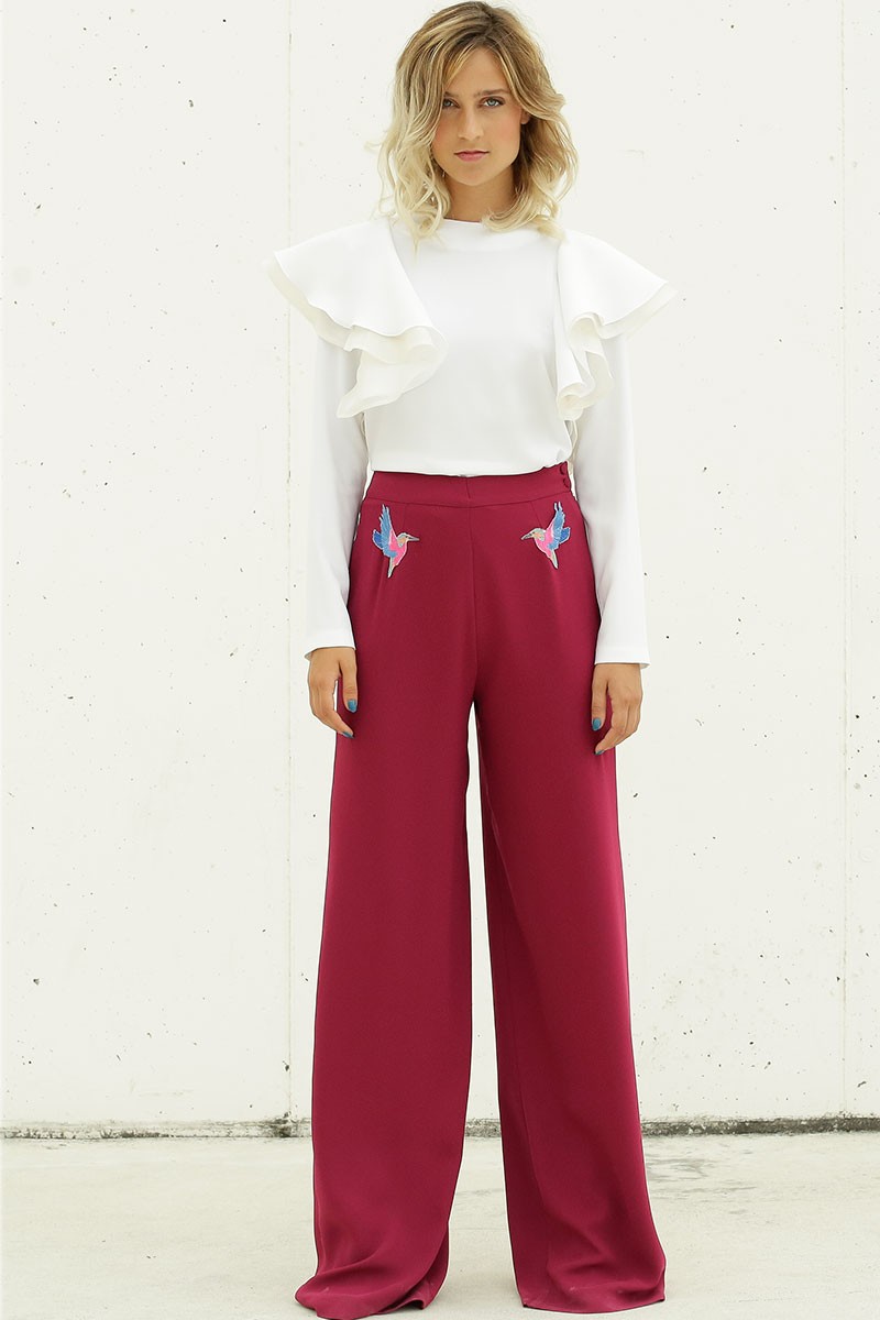 Blusa blanca con volantes en los hombros. Diseño cerrado en la parte delantera, de manga larga y con el detalle de los volantes en los hombros que caen tanto por (...)