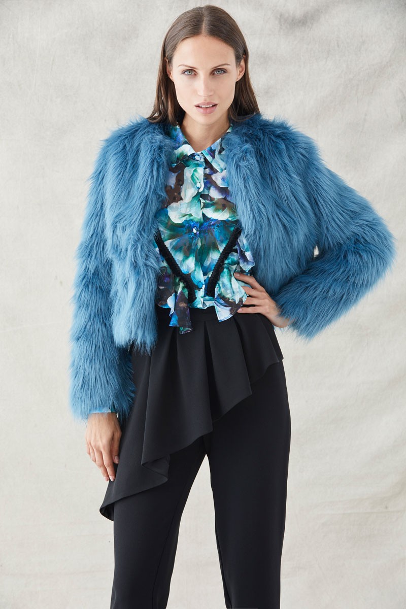 Pantalón pitillo confeccionado en tejido de crepe de color negro. Ceñido en la cintura, estiliza la figura femenina y con peplum asimétrico muy favorecedor. Cierre en el (...)