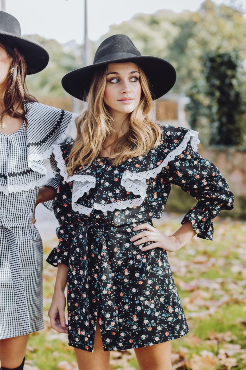 Vestido corto abotonodado con corte de camisa confeccioando en tejido estampado de flores. (...)