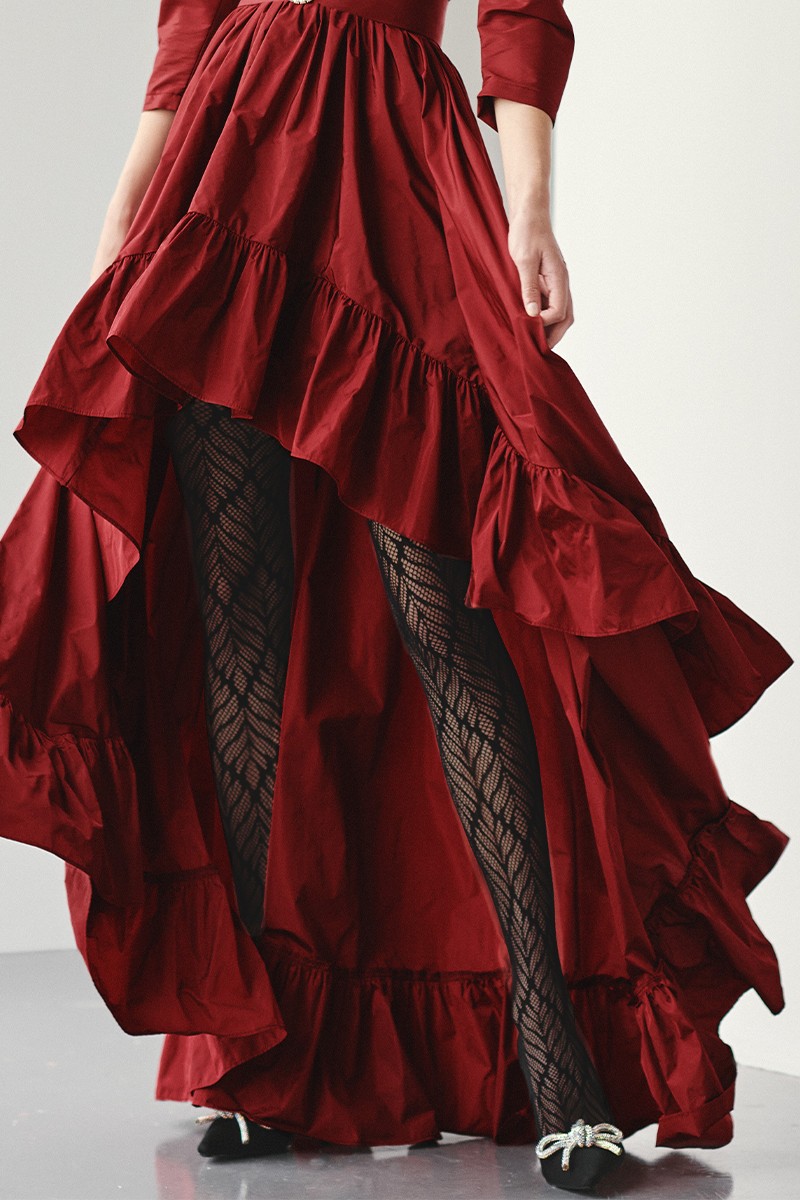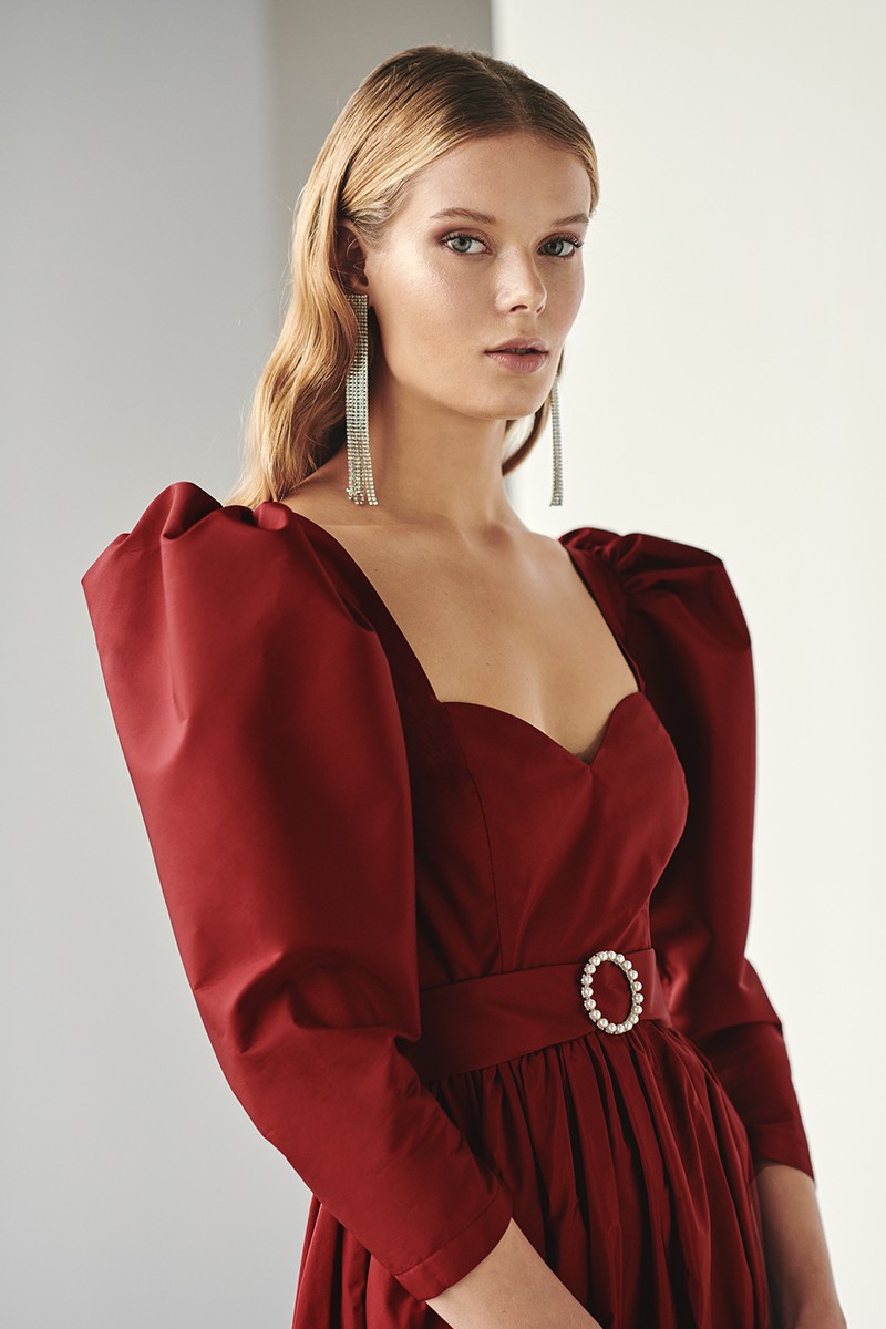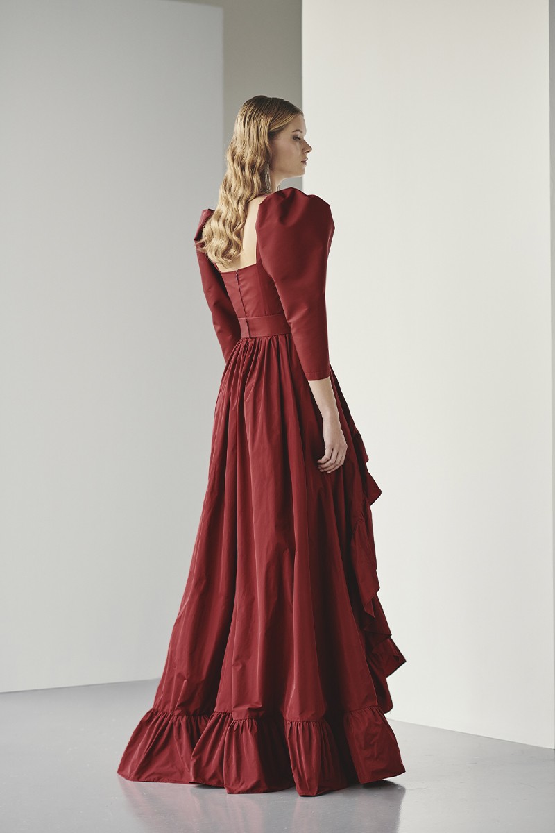 Impresionante vestido largo confeccionado en tafetán de alta calidad de color granate. (...)