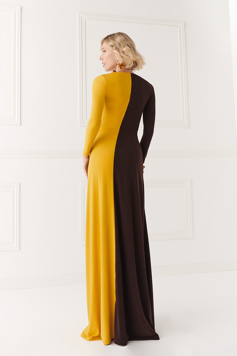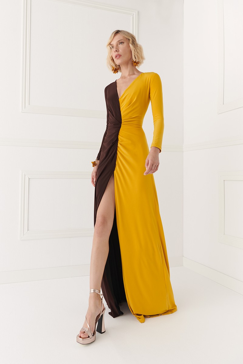 Precioso vestido largo drapeado confeccionado en un tejido de punto de seda de excelente calidad. (...)