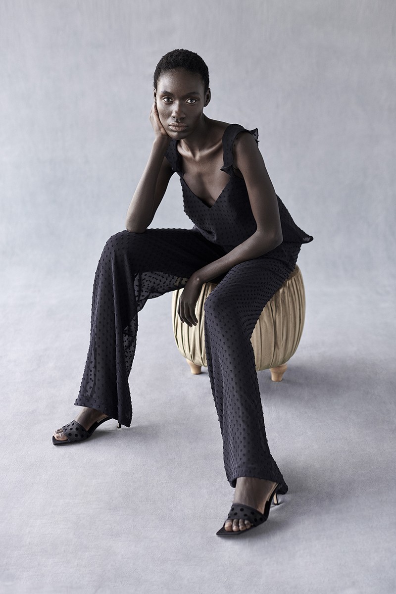 Maravilloso set dos piezas confeccionado en un precioso plumetti color blanco o negro. (...)