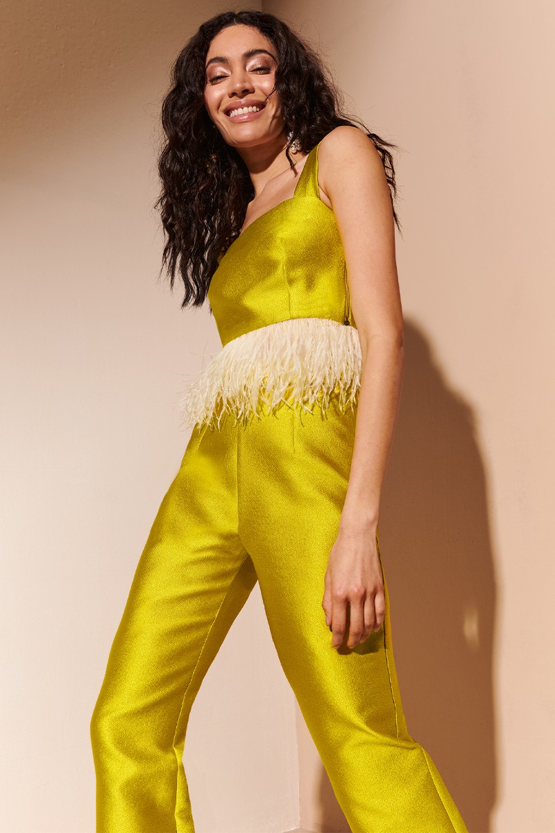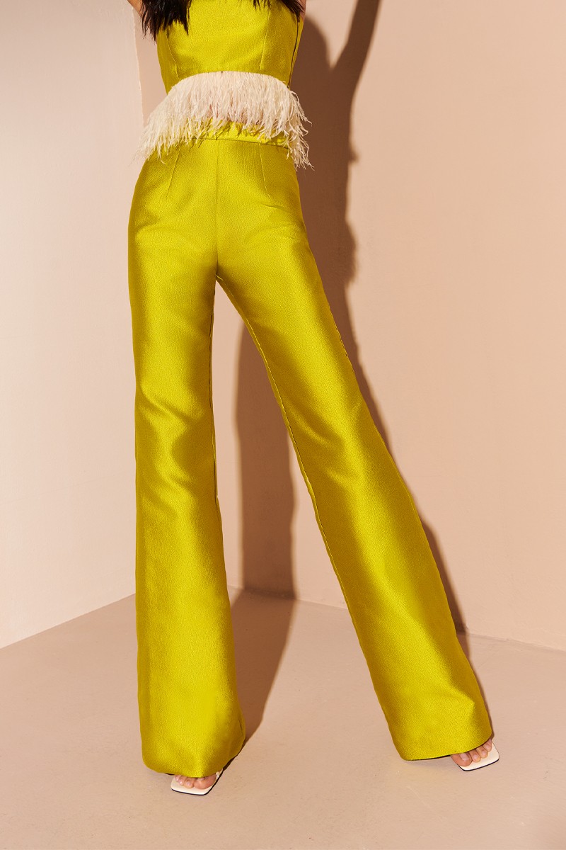 Precioso conjunto de palazzo y top con pluma confeccionado en jacquard lima (...)