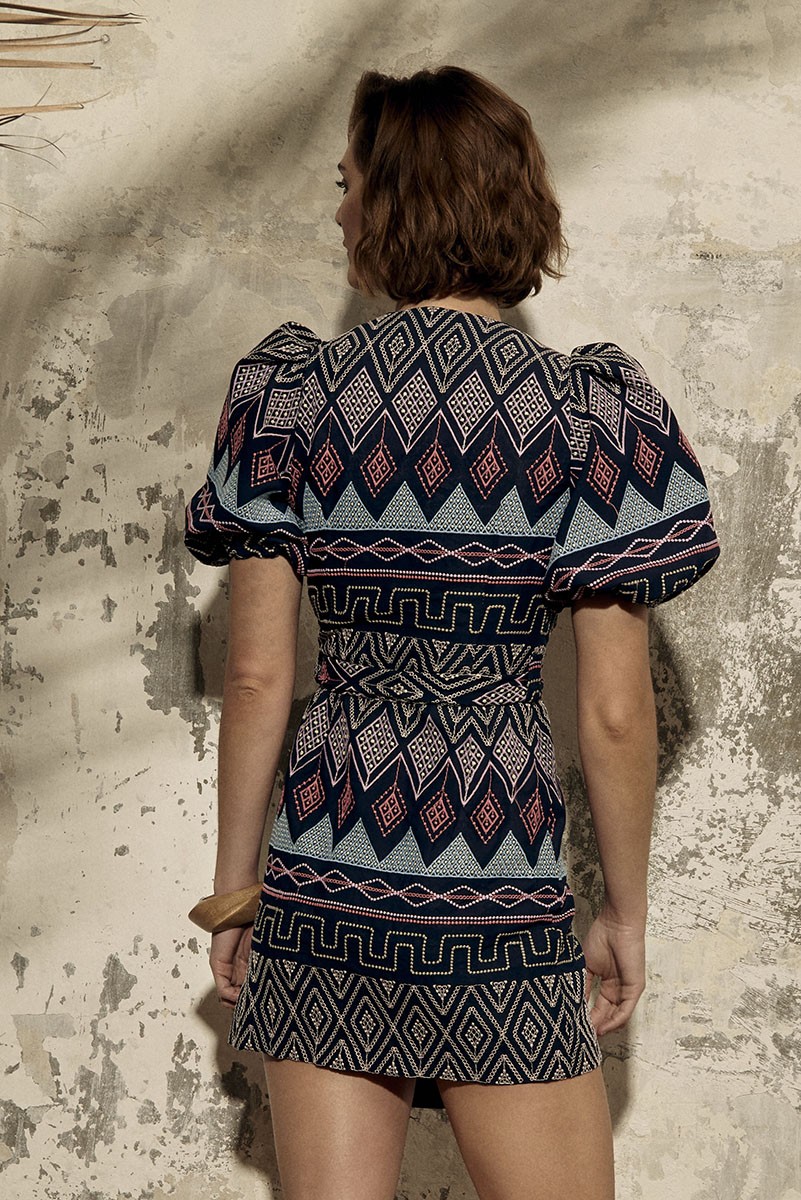 Precioso vestido corto confeccionado en un tejido de algodón con bordados étnicos, base del tejido en color azul con bordados azules, frambuesas, rosas.Tejido de gran calidad (...)